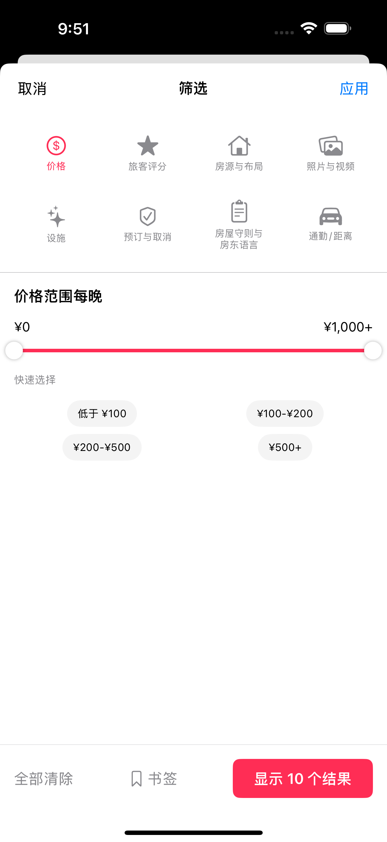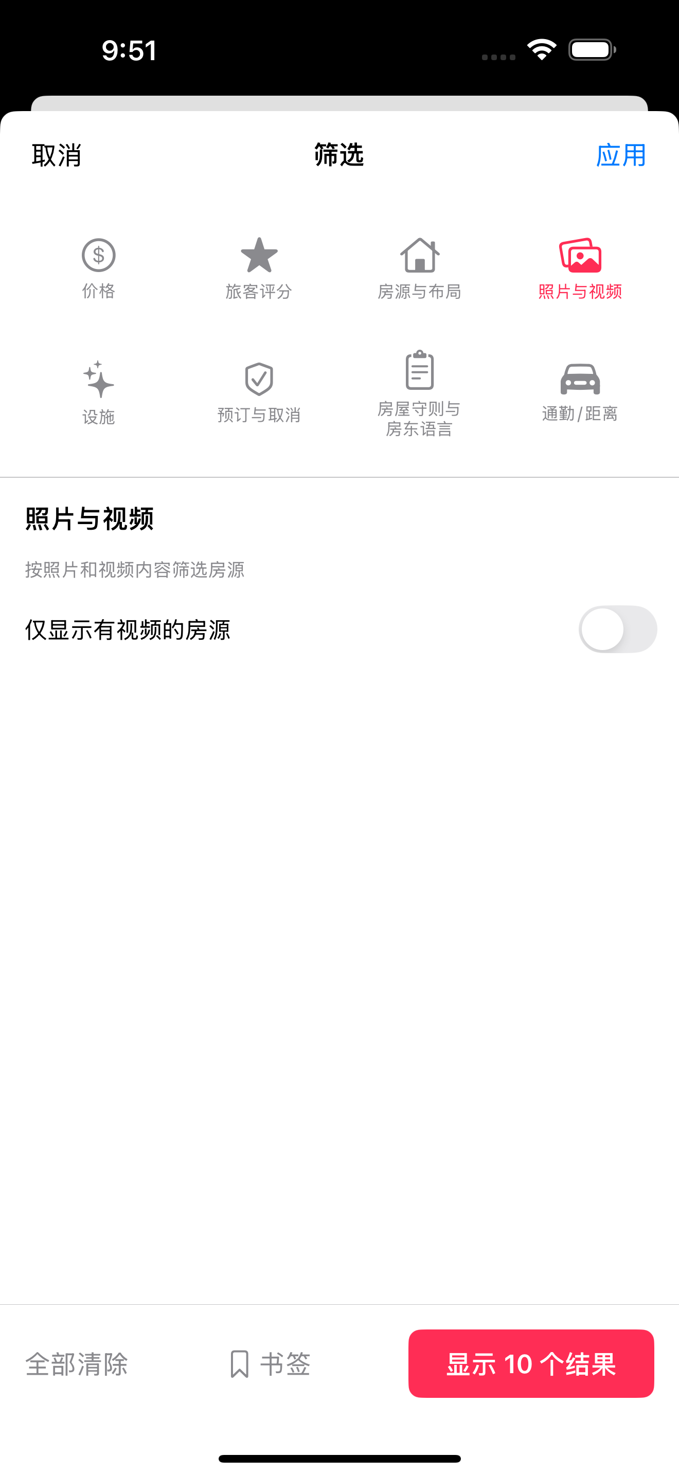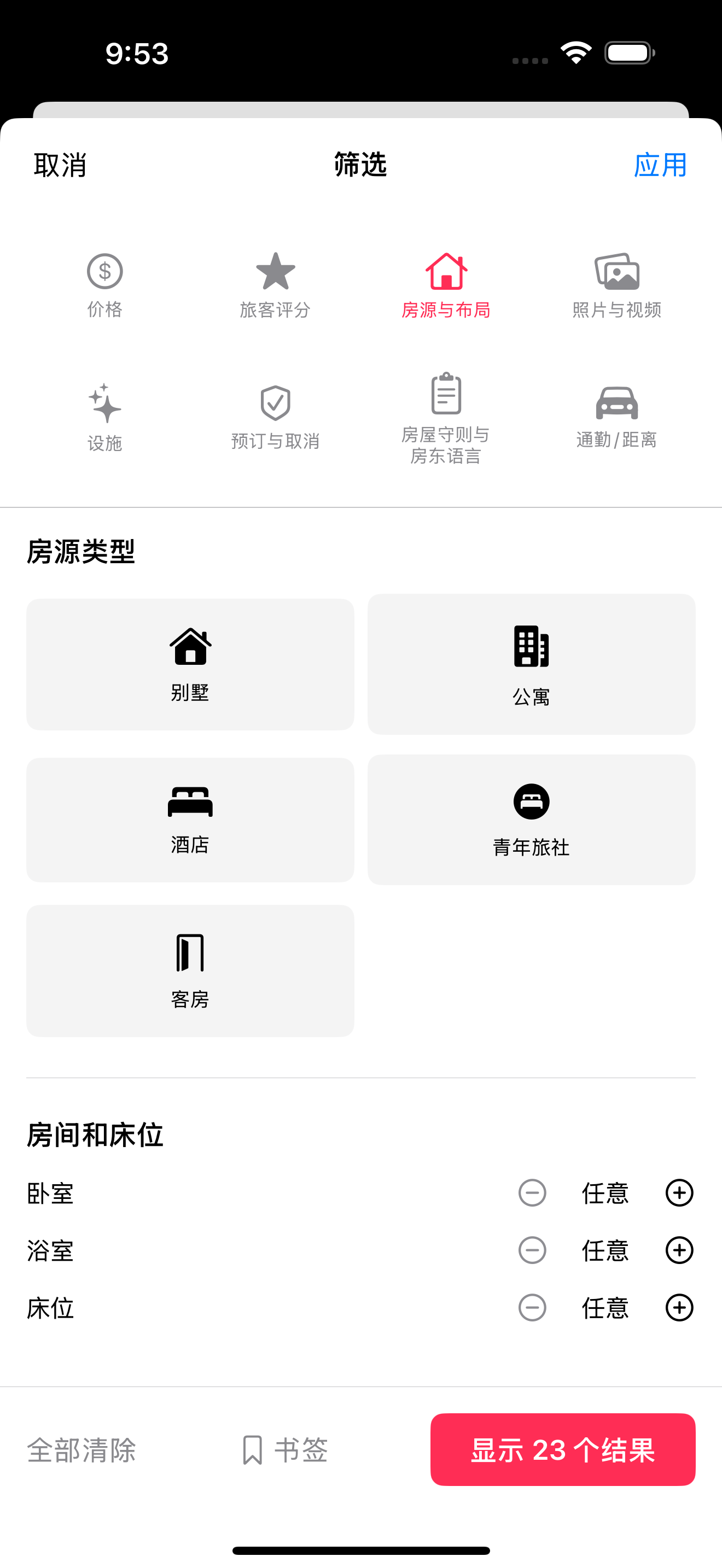 | 独栋房屋、公寓、客房 | 筛选应用于整个房源 |