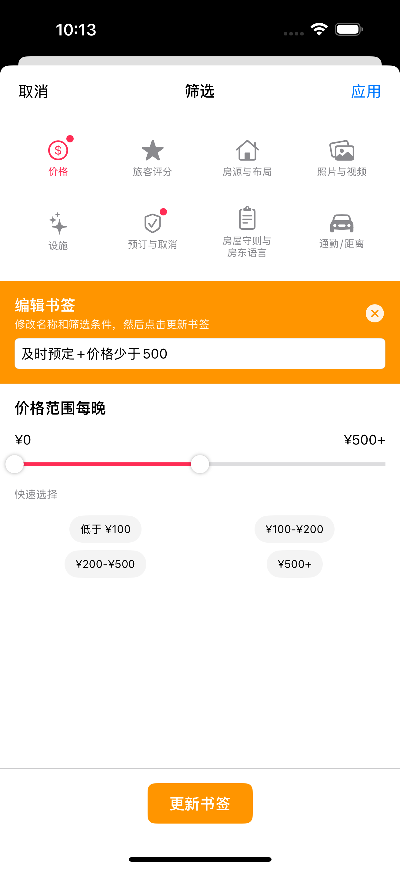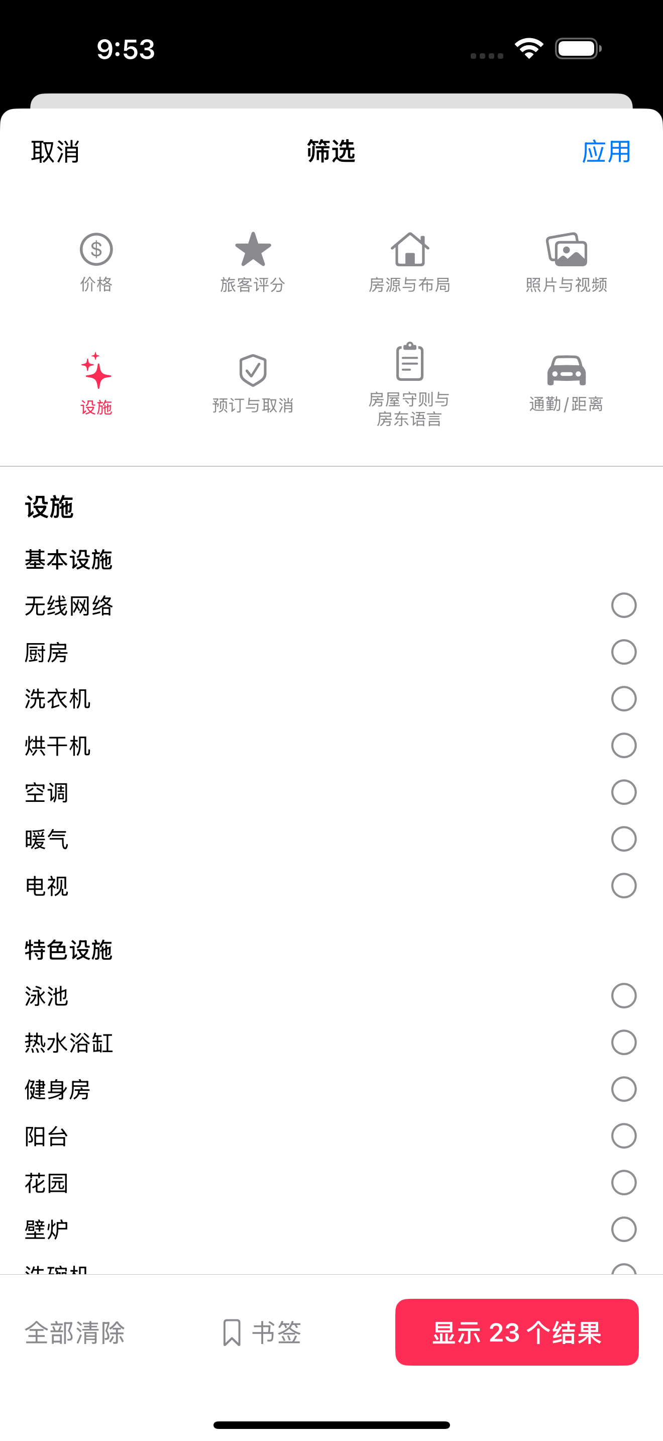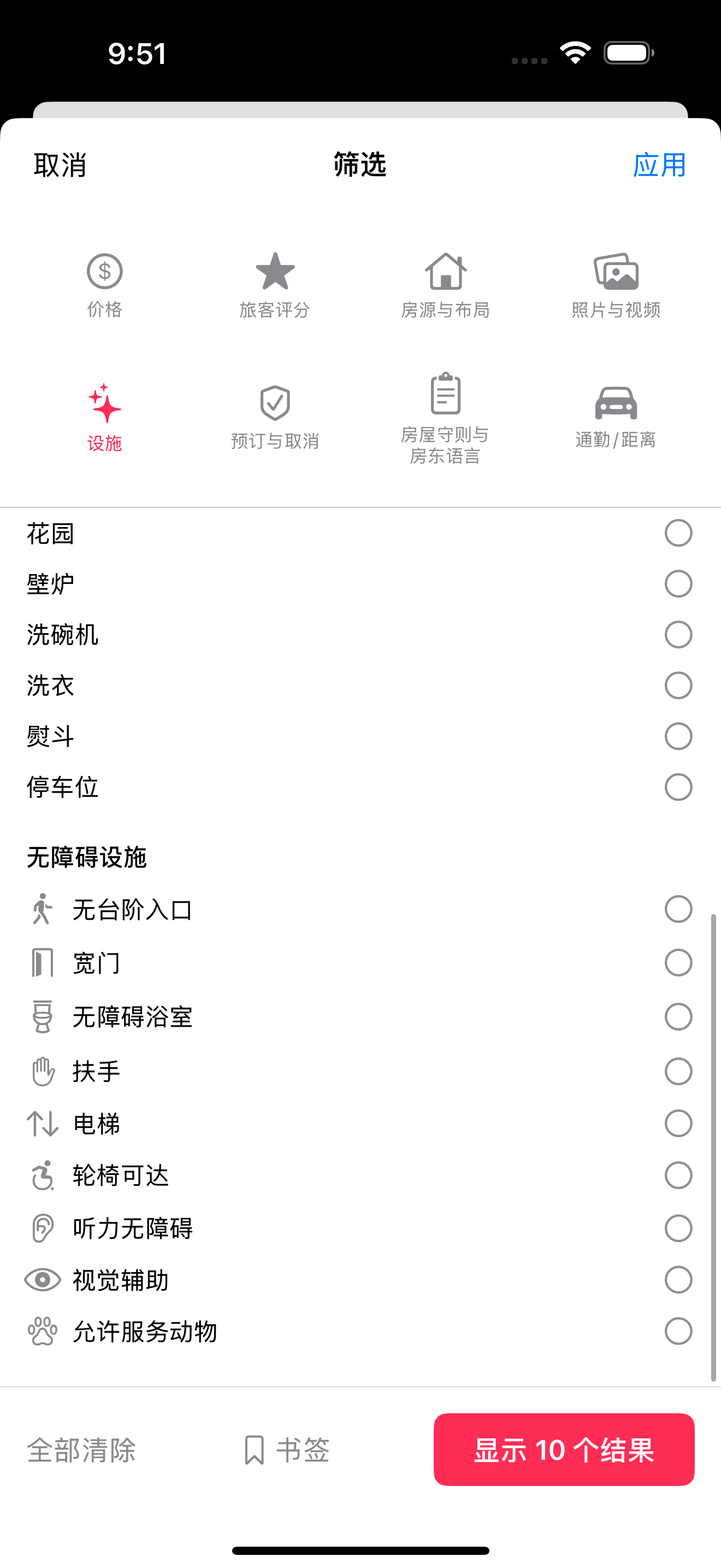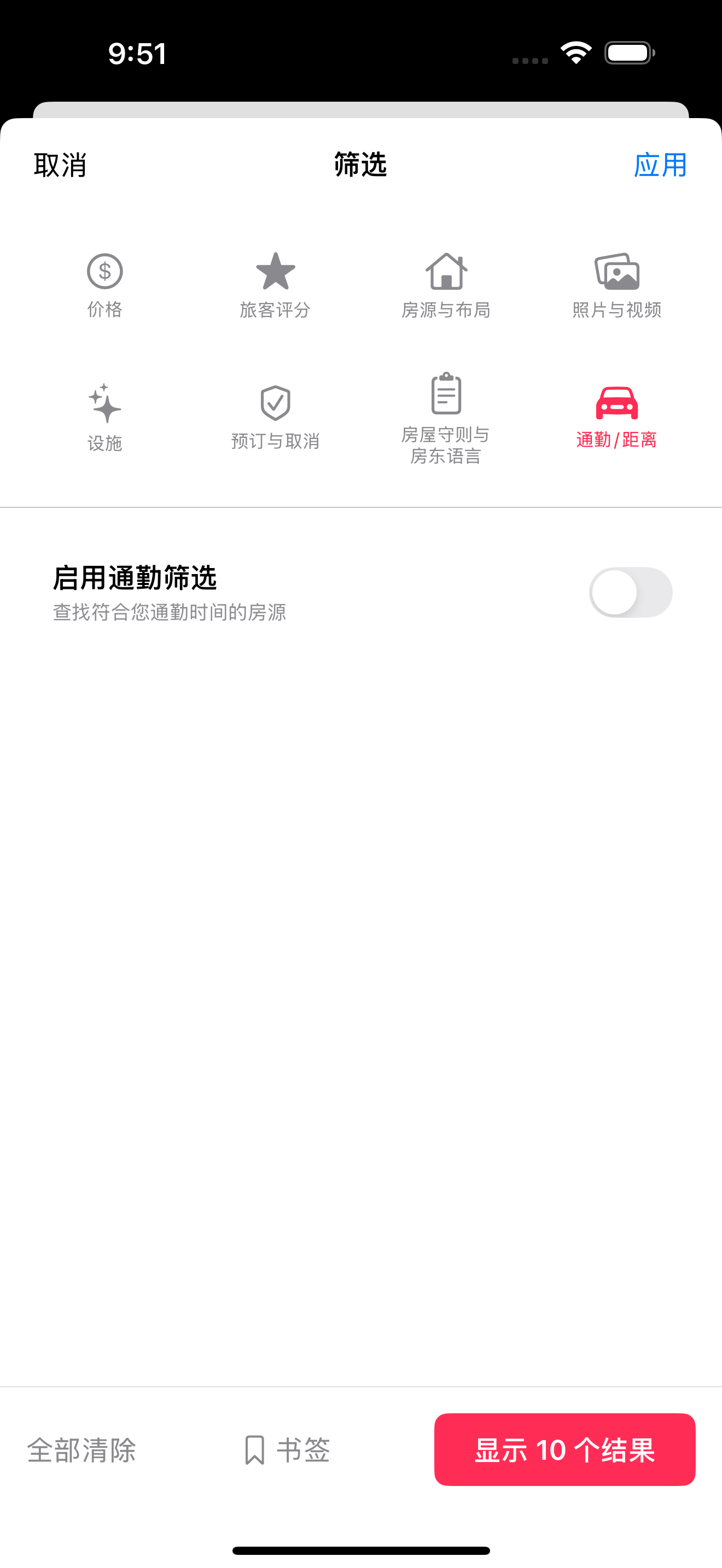 | 独栋房屋、公寓、客房 | 筛选应用于整个房源 |