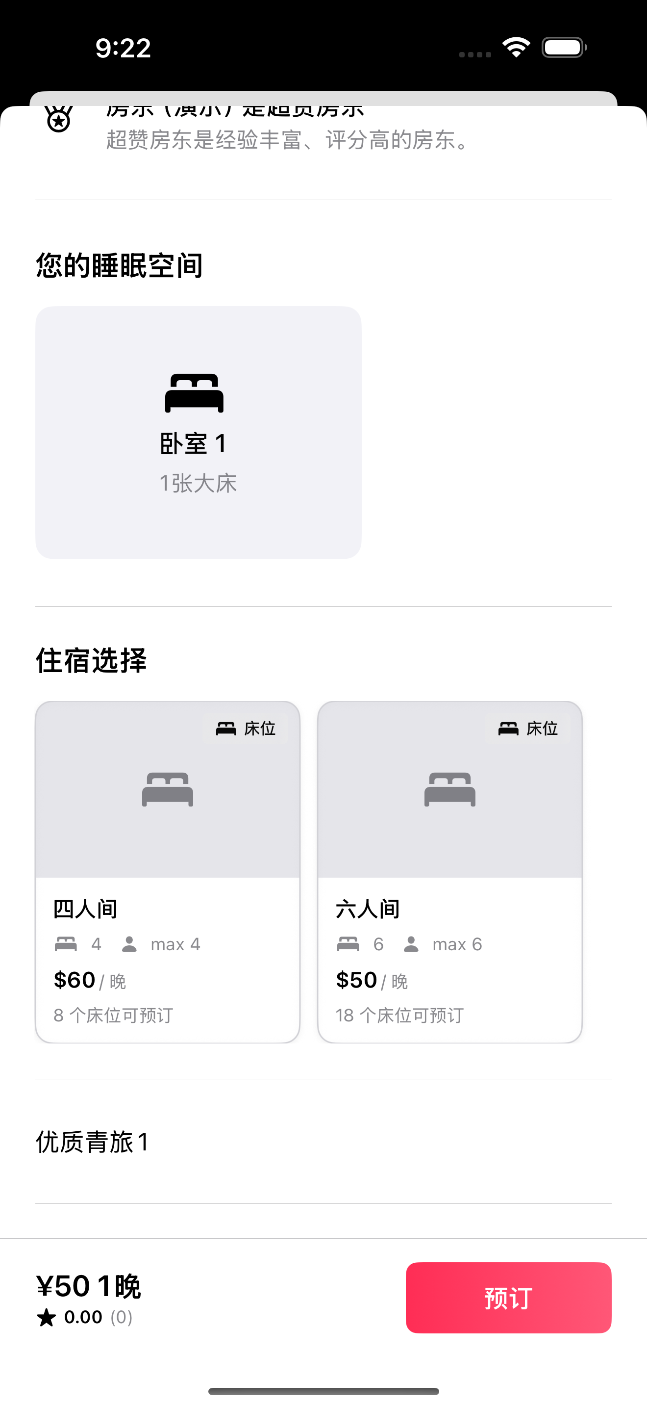 酒店、青旅支持多单元预订 - 选择房型/床型,可预订多个单元。