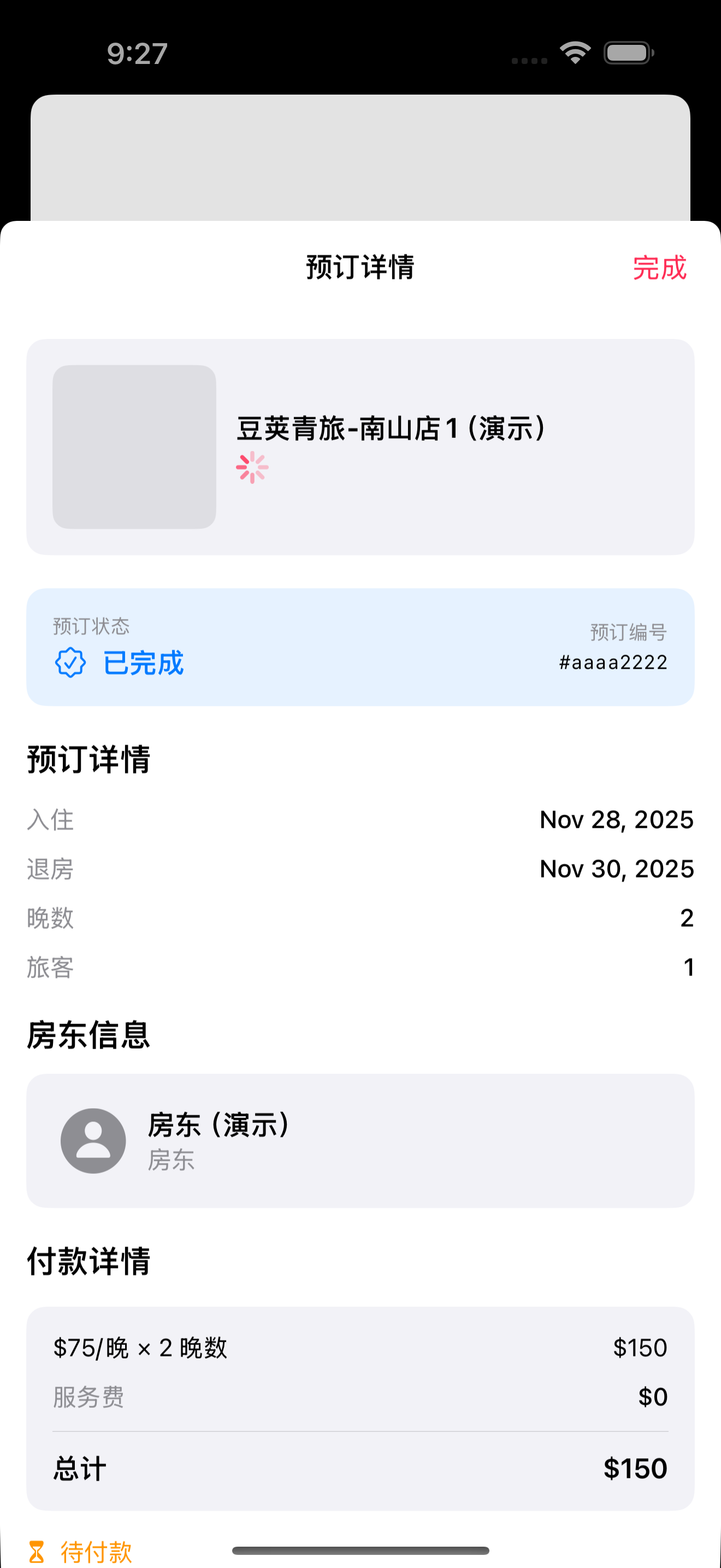 详情页: 房源信息、日期时间、状态、价格明细、房东联系