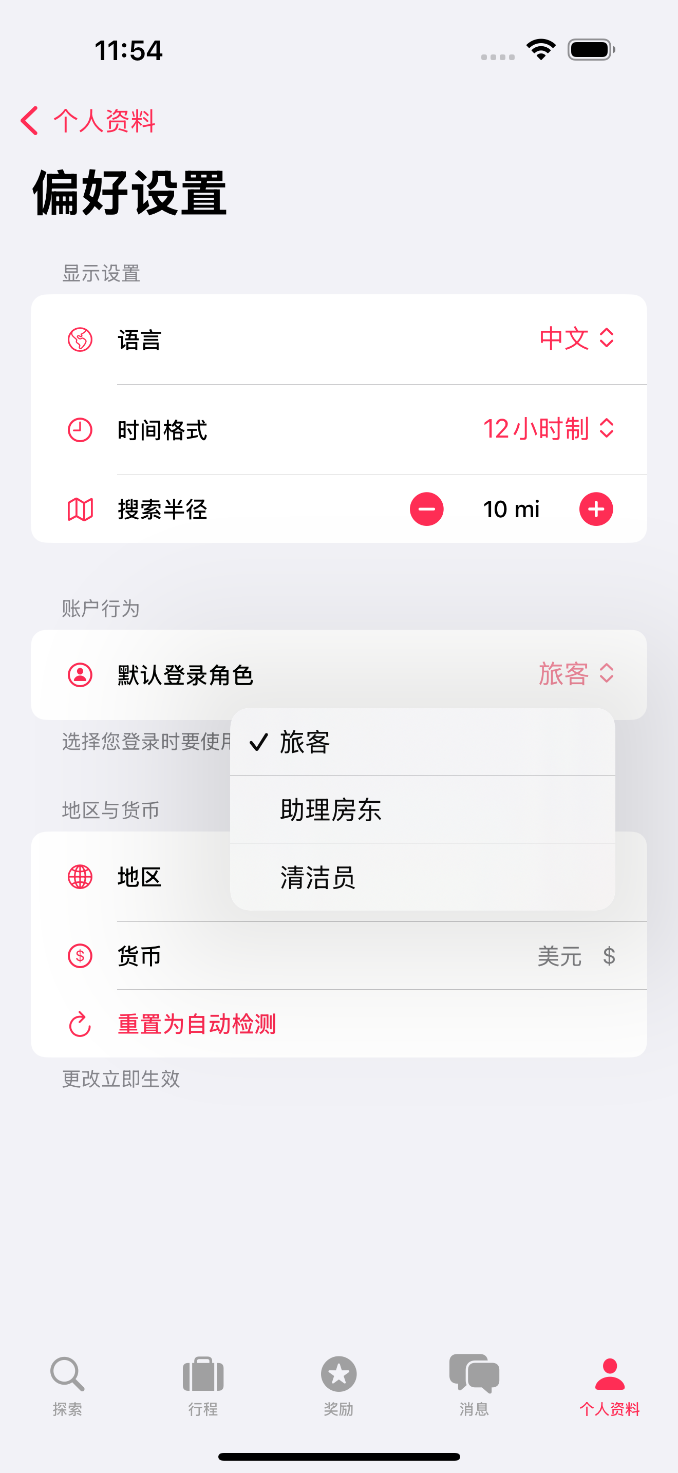 - 新增: 偏好设置中的主要角色设置 - 选择登录时的默认角色(房客或房东)